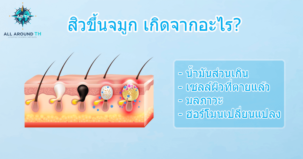 - สิวขึ้นจมูก เกิดจากความมันส่วนเกิน เซลล์ผิวที่ตายแล้ว และสิ่งสกปรกที่ตกค้างในรูขุมขน จนทำให้เกิดการอุดตัน