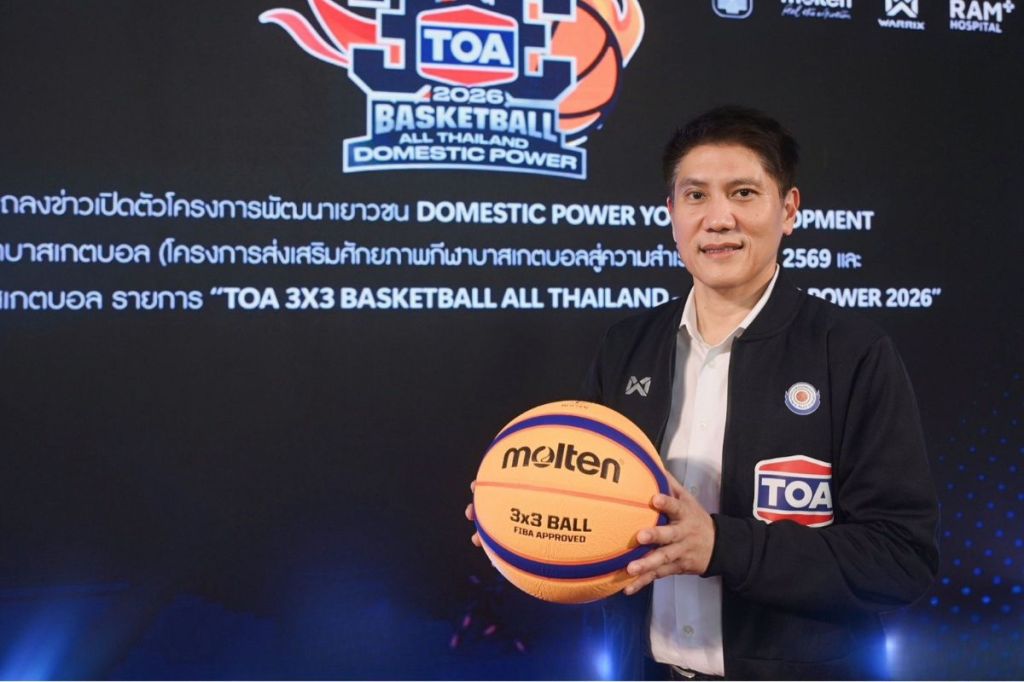 บริษัท ทีโอเอ เพ้นท์ (ประเทศไทย) จำกัด (มหาชน) หรือ TOA ผนึกกำลัง การกีฬาแห่งประเทศไทย (กกท.) กองทุนพัฒนากีฬาฯ และ สมาคมกีฬาบาสเกตบอลแห่งประเทศไทย แถลงข่าวเปิดศึกบาสเกตบอล 3 คน รายการ ‘TOA 3×3 Basketball All Thailand – Domestic Power 2026’ ต่อเนื่องเป็นปีที่ 4 ขยาย 15 สนามทั่วไทย เริ่มสนามแรกที่ จ.สุพรรณบุรี 28-29 มีนาคมนี้ ชิงถ้วยตราสัญลักษณ์โครงการในพระบรมราชานุญาตในหลวง และเงินรางวัลรวมกว่า 2 ล้านบาท พร้อมเสริมกิจกรรมครบวงจร ติวเข้มนักกีฬา- โค้ช และเปิดแคมป์รวมนักกีฬาเด่นเข้าค่ายฝึกแบบเข้มข้น ต่อยอดสู่ทีมชาติ