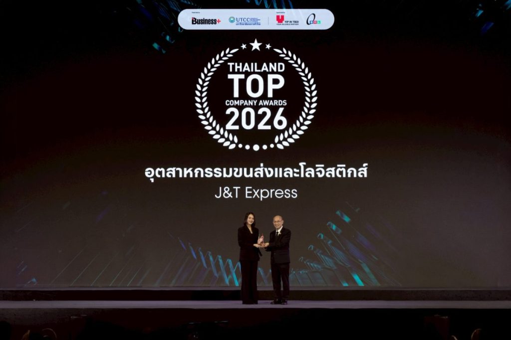 เจแอนด์ที เอ็กซ์เพรส ผู้ให้บริการขนส่งด่วนและโลจิสติกส์ระดับโลก คว้ารางวัล Thailand TOP Company Awards 2026 ในสาขาอุตสาหกรรมขนส่งและโลจิสติกส์ สะท้อนถึงการพัฒนาเทคโนโลยี โครงสร้างพื้นฐาน และมาตรฐานการให้บริการอย่างต่อเนื่อง เพื่อรองรับการเติบโตของตลาดอีคอมเมิร์ซและภาคธุรกิจในประเทศไทย